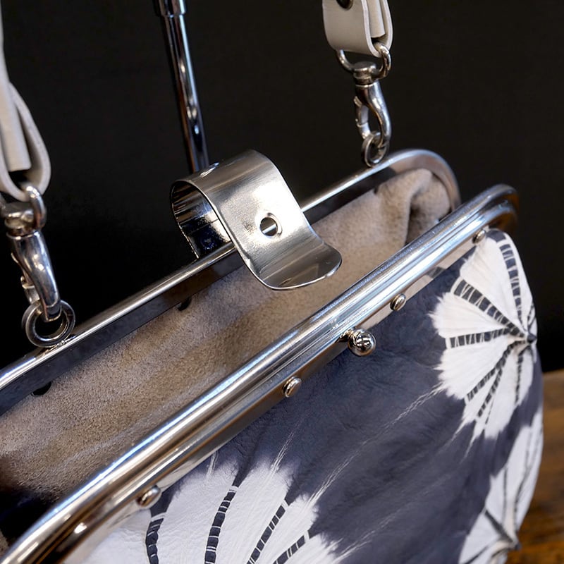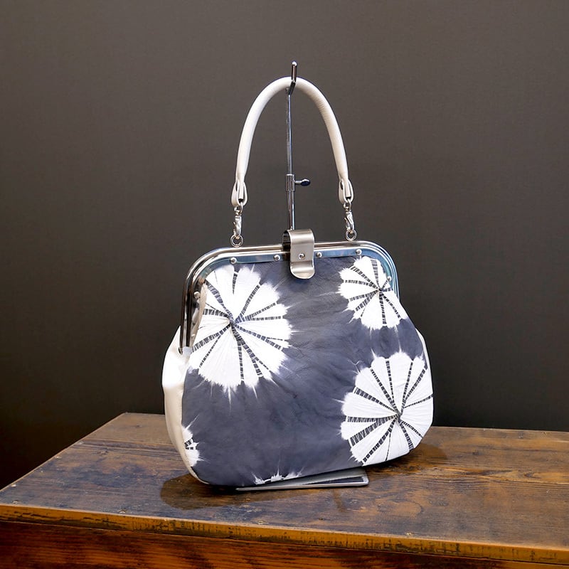 絞り革を贅沢に使用し、素材と技術を融合して二つとない個性を放つ がま口バッグ。